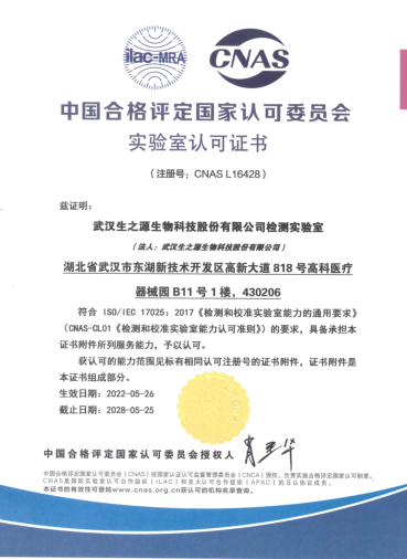 近日,中國合格評(píng)定國家認(rèn)可委員會(huì)(CNAS)正式向武漢生之源生物科技股份有限公司檢測(cè)實(shí)驗(yàn)室頒發(fā)了實(shí)驗(yàn)室認(rèn)可證書(注冊(cè)號(hào):CNAS L16428),這標(biāo)志著CNAS肯定我司檢測(cè)實(shí)驗(yàn)室的管理水平以及開展體外診斷試劑產(chǎn)品的檢測(cè)能力,達(dá)到了“中國認(rèn)可、國際互認(rèn)”的要求。