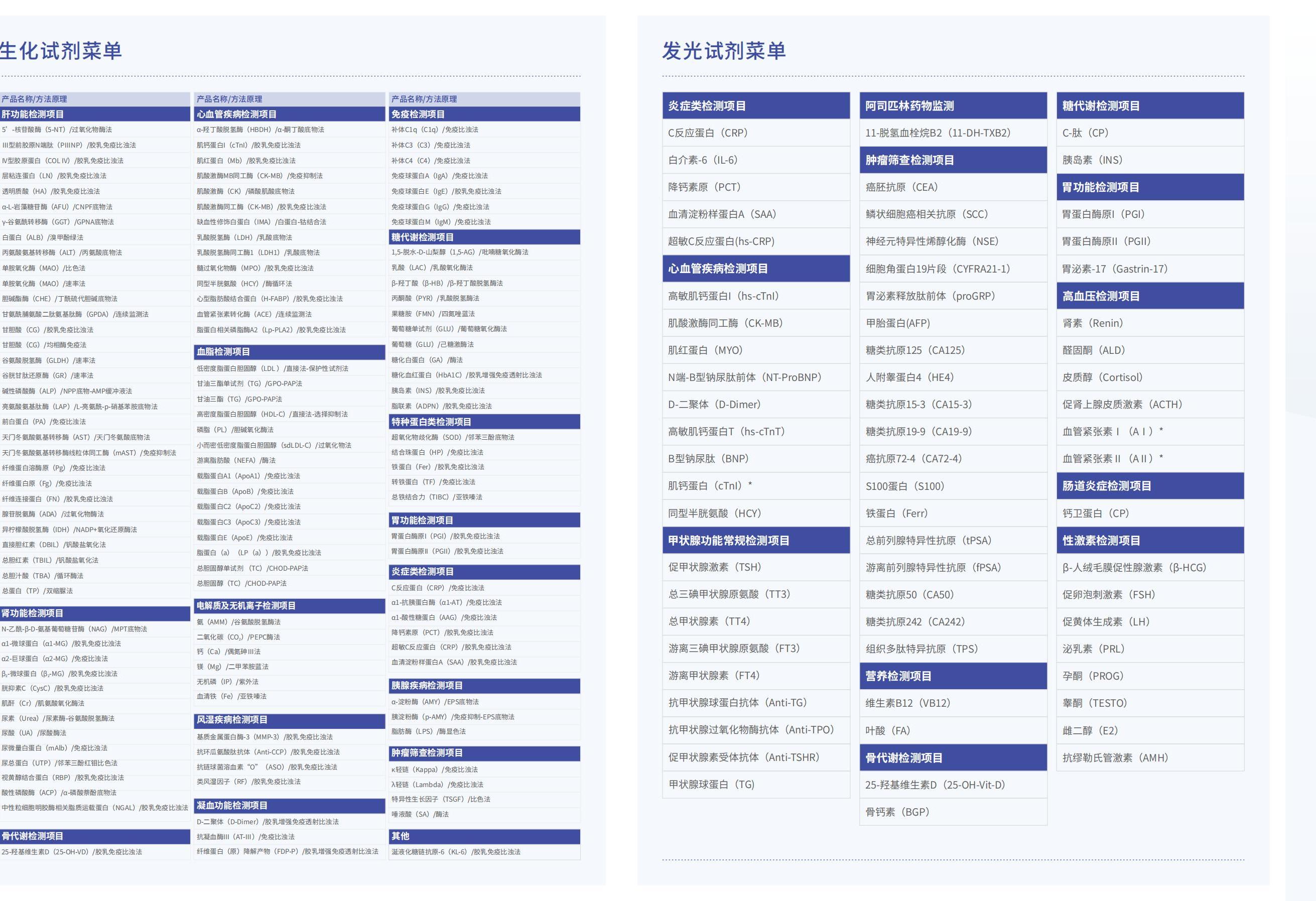 化學(xué)發(fā)光試劑以高靈敏度見長,可精準(zhǔn)檢測pg級腫瘤標(biāo)志物、微量激素等,涵蓋炎癥、心血管疾病、甲狀腺功能等專項(xiàng)檢測。結(jié)果準(zhǔn)確性高,支持疾病早期篩查、預(yù)后評估和療效監(jiān)測,與生化試劑形成互補(bǔ)檢測體系。其核心技術(shù)獲15項(xiàng)國家發(fā)明專利,采用特異性雙功能偶聯(lián)劑實(shí)現(xiàn)抗體-酶定向偶聯(lián),14項(xiàng)產(chǎn)品被納入武漢市創(chuàng)新產(chǎn)品目錄。